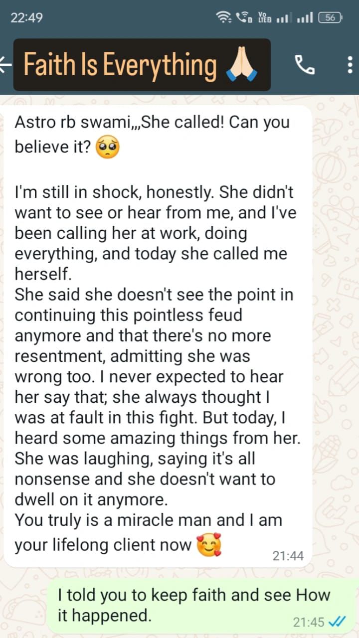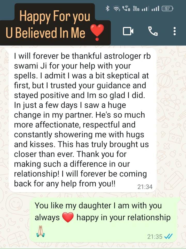RB Swami is a renowned astrologer dedicated to providing effective and time-tested solutions for life’s most pressing problems. With deep knowledge of astrology and powerful remedies, he has helped countless individuals navigate challenges related to love, marriage, relationships, family disputes, career, and more. Whether you’re facing a lost love, intercaste marriage hurdles, job instability, or conflicts in your personal life, RB Swami offers personalized guidance to bring harmony, happiness, and success. Don't let obstacles define your future—connect with RB Swami today and take the first step toward a brighter tomorrow!
